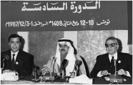 السيد الحبيب عمار وزير الداخلية التونسي ممثل سيادة الرئيس زين العابدين بن علي وعلى يساره صاحب السمو الملكي الامير نايف بن عبدالعزيز وزير الداخلية بالمملكة العربية السعودية الرئيس الفخري للمجلس والدكتور اكرم نشات ابراهيم