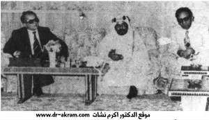 - الدكتور اكرم نشات ابراهيم مع صاحب السمو الشيخ عيسى بن سلمان ال خليفة امير دولة البحرين بحضور الشيخ حمد بن عيسى ال خليفة ولي العهد 1987