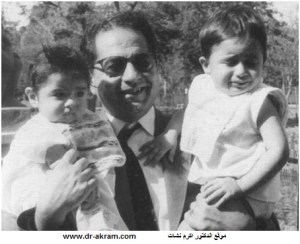 - الدكتور اكرم نشات يحتضن ولديه علي بيساره وحسن بيمينه في القاهرة – 1961