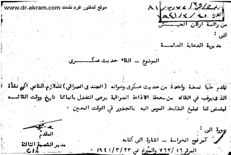 كتاب الشعبة الثالثة برئاسة أركان الجيش الى مديرية الدعاية العامة